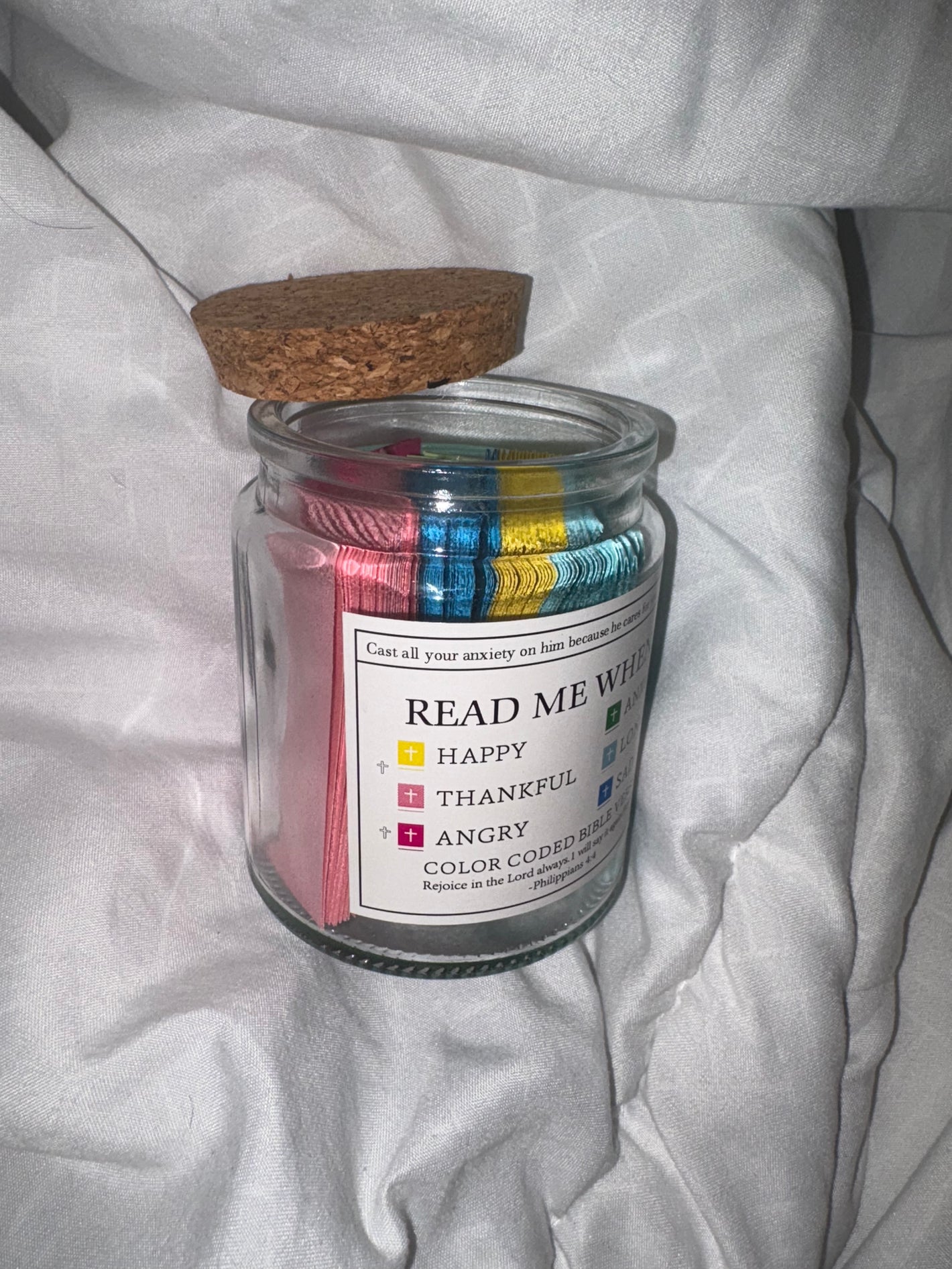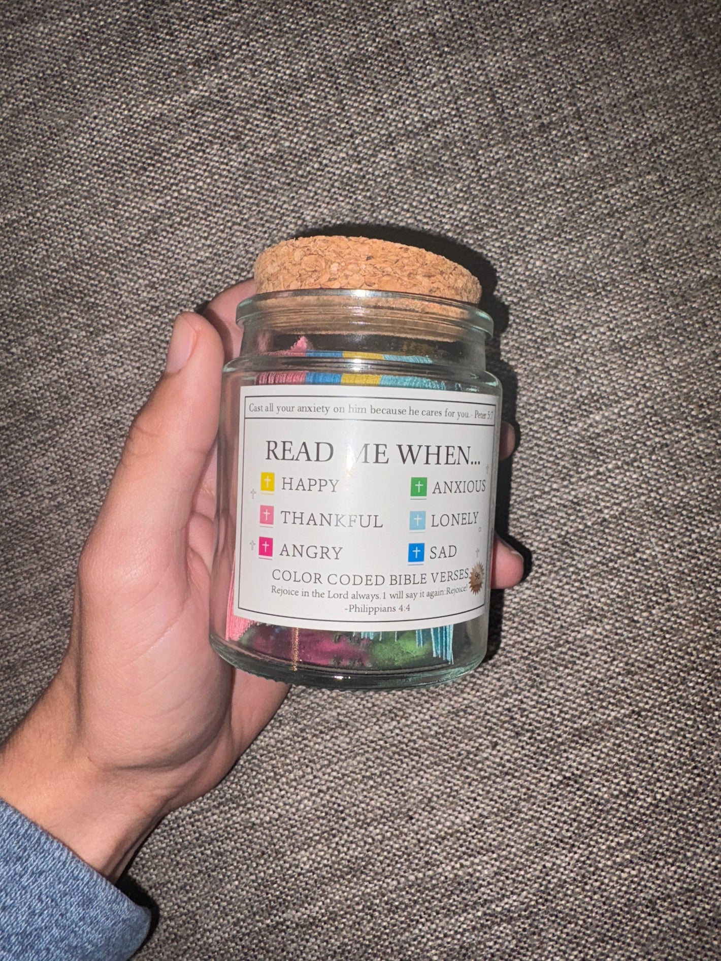 My boyfriend got me this bible jar for Christmas, it helps me so much with my anxiety. Thank you!!!