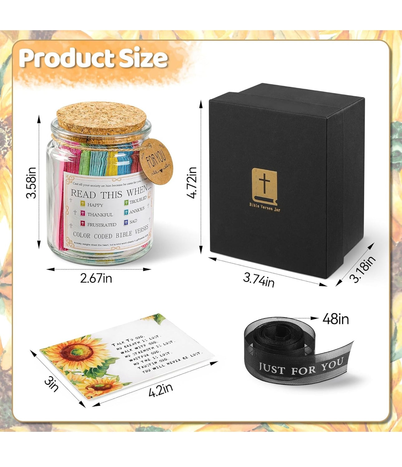 The jar contains 100 carefully selected Bible verses, each lovingly color-coded for moments when you feel happy, thankful, angry, anxious, lonely, or sad. Every strip is meant to meet you where you are and remind you that God’s words are always there to comfort, guide, and uplift you. 🕊️